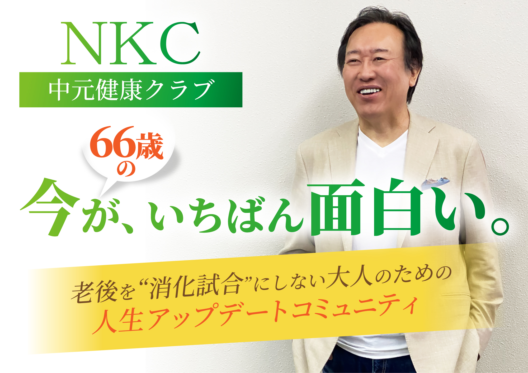 NKC(中元健康クラブ)は、40代後半からの大人たちが「これからの人生」を前向きに楽しむための、オンラインコミュニティです。